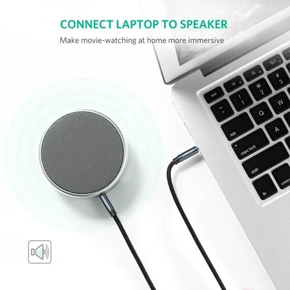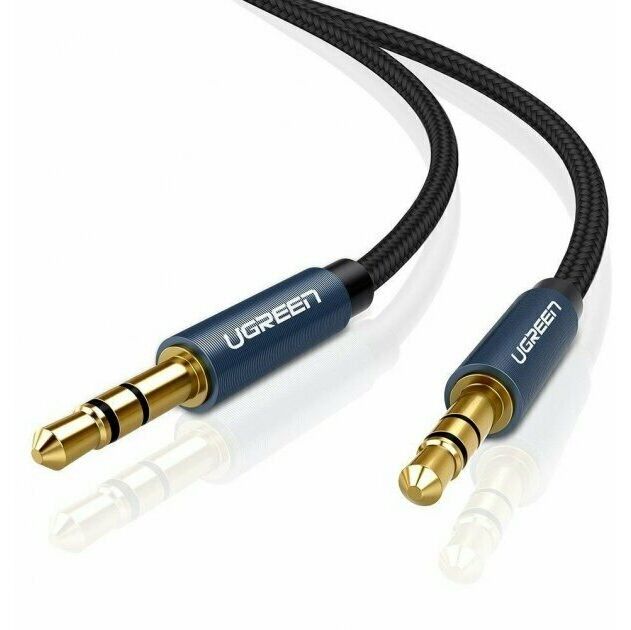 Кабель UGREEN AV112 10687 3.5mm Male to 3.5mm Male Cable Gold Plated Metal Case with Braid 2m Blue