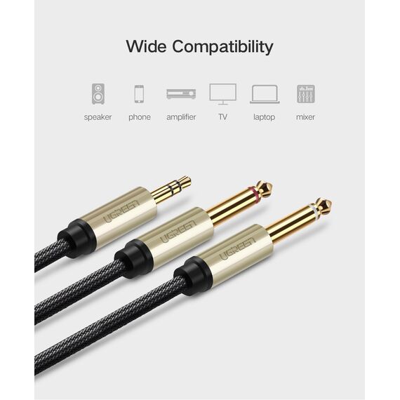 Кабель UGREEN AV126 10615 3.5mm TRS to Dual 6.35mm TS Audio Cable 2m Gray