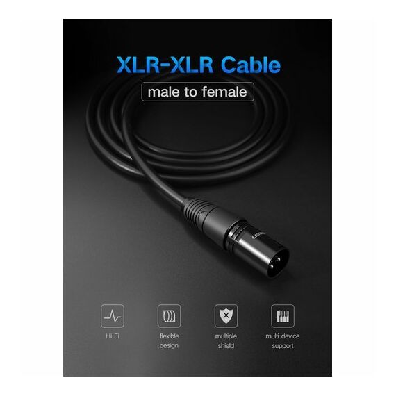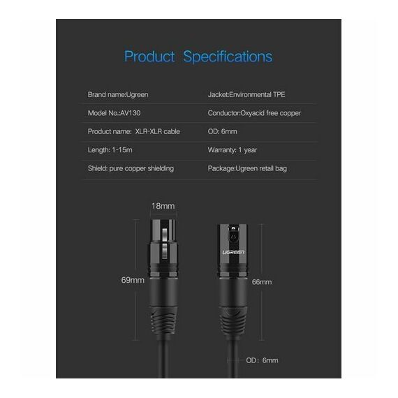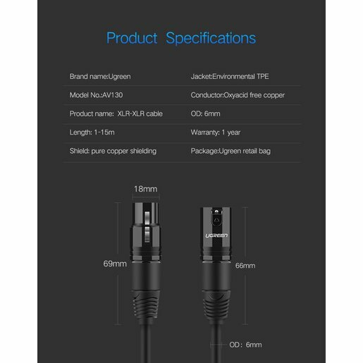 Кабель UGREEN AV130 20712 Cannon Male to Female Microphone Extension Audio Cable 5m Black