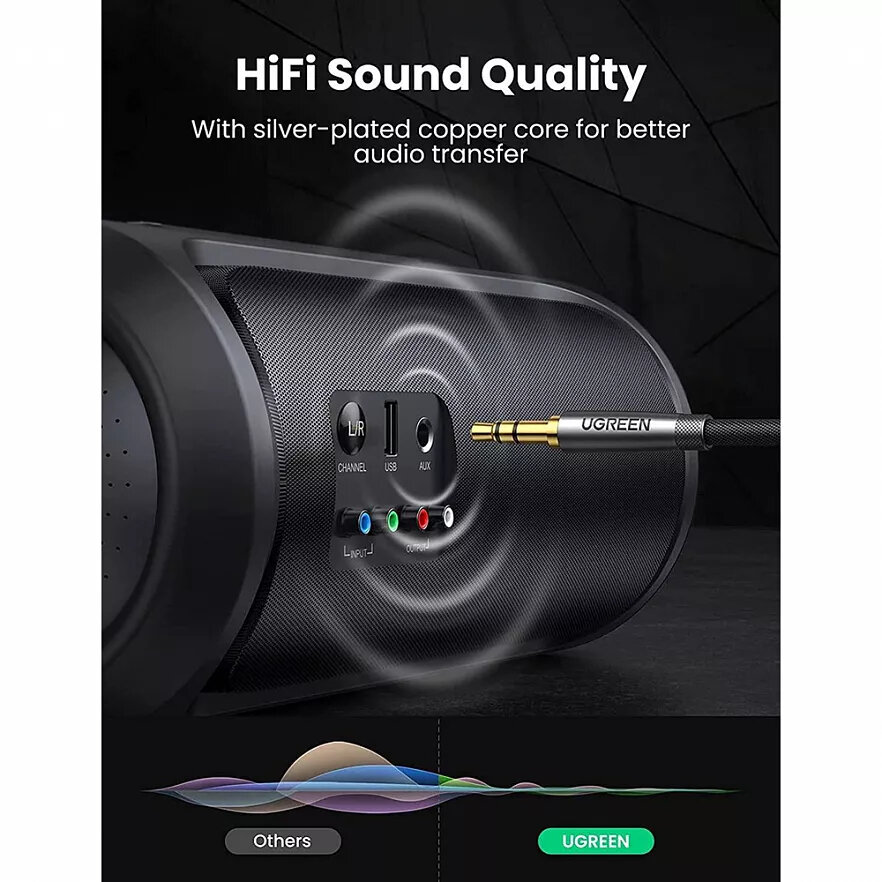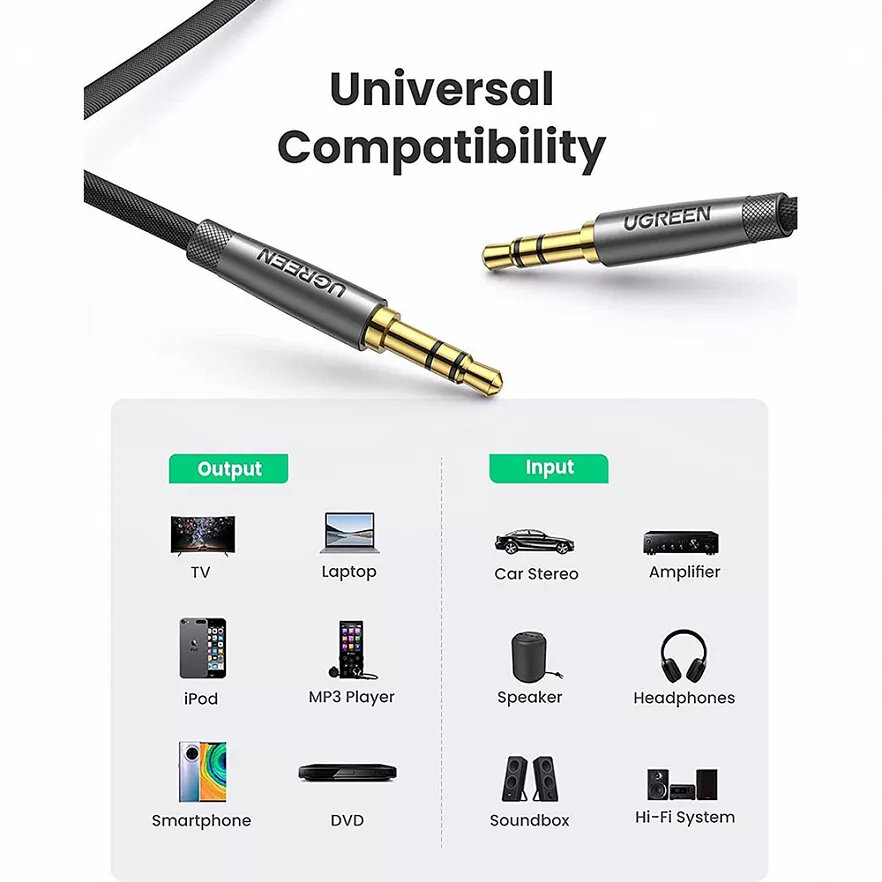 Кабель UGREEN AV150 50355 3.5mm Male to Male Alu Case Braid Audio Cable 1m Silver Gray