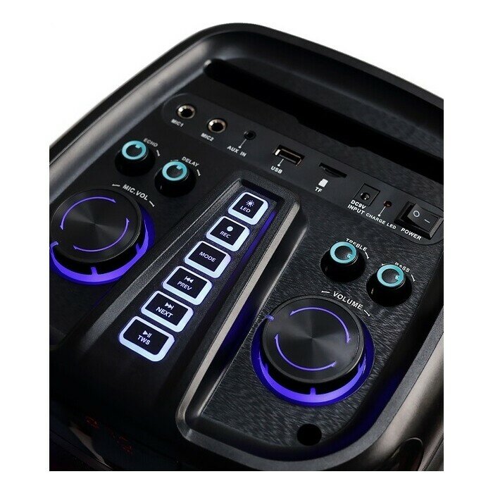 Microlab PT800 - это акустическая система для вечеринок с светодиодной подсветкой. Особенности: RGB подсветка; объединение в стерео пару (TWS); удобная панель управления; поддержка: Bluetooth, Aux, USB, MicroSD; выходная мощность: 135 Вт; частотная характеристика: 40 Гц - 20 кГц; время работы: 6 часов; несколько режимов входа: Bluetooth, линейный вход, USB. Microlab PT800 - портативная акустическая система, представляющая собой компактное устройство, способное обеспечить качественный звук в любом месте. Эта акустика идеальна для использования на пикнике, на даче, на открытых вечеринках или для простого прослушивания музыки в домашних условиях. Однако несмотря на свои небольшие размеры, Microlab PT800 способен произвести мощный и качественный звук. Акустическая система оснащена двумя динамиками, каждый из которых имеет высокую мощность и воспроизводит звук четко и громко. Это позволяет наслаждаться любимой музыкой на открытом воздухе или создавать атмосферу на вечеринке. Microlab PT800 также обладает встроенным аккумулятором, благодаря чему он может работать без подключения к электрической сети. Акустика может работать до 6 часов от одной зарядки, что позволяет использовать ее на протяжении всего дня без необходимости постоянно искать розетку. В таком небольшом корпусе она воспроизводит потрясающий звук и высокие басы. Вы можете слушать музыку с устройств, оснащенных несколькими интерфейсами. Серия PT оснащена встроенными литиевыми аккумуляторами ip до 4500 мАч, что позволяет слушать музыку в любом месте. Кроме того, Microlab PT800 имеет различные возможности подключения. Устройство оснащено Bluetooth, что позволяет подключаться к нему с любого совместимого устройства, такого как смартфон, планшет или ноутбук, и проигрывать музыку без проводов. Акустику также можно подключить через AUX-вход, что делает ее совместимой с любыми другими устройствами. Устройство также оснащено разъемом для подключения наушников. Эта портативная акустика является отличным выбором для всех, кто хочет насладиться музыкой в любой ситуации и в любом месте. Комплектация: колонка; адаптер питания; кабель 3.5 мм; пульт ДУ; документация.