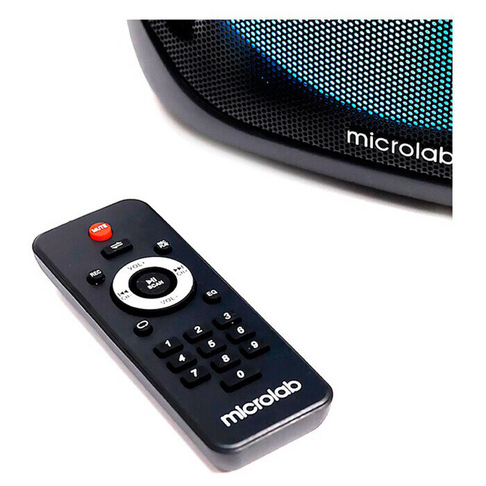FM-радио, дисплей, поддержка microSD, ручка, световые эффекты
