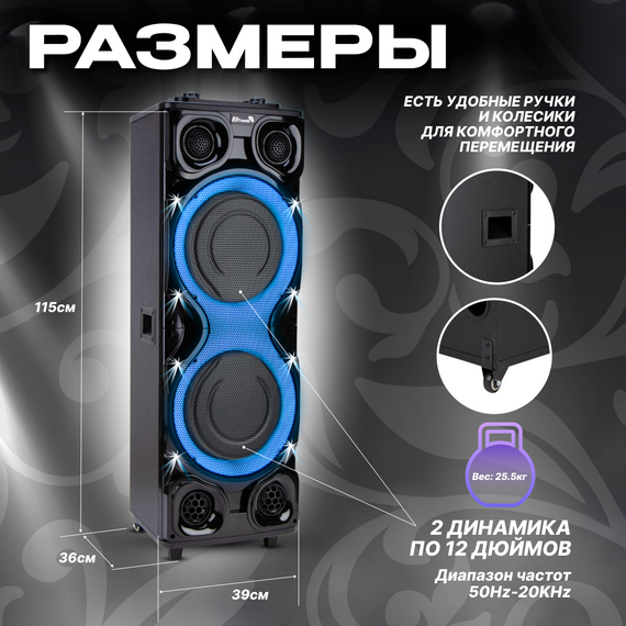 Дисплей, караоке, поддержка microSD, световые эффекты