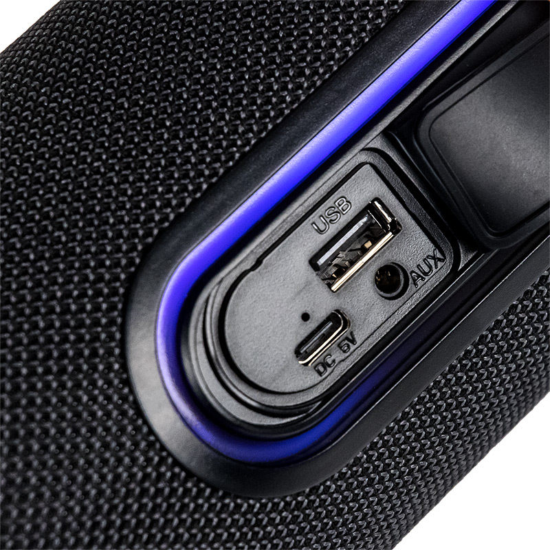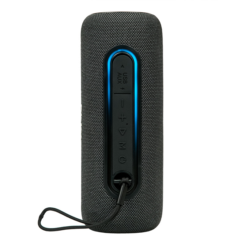 Управление питание вкл/выкл, воспроизведение/пауза при воспроизведении с флэшки/поиск радиостанций в режиме радио/режим подсветки/отключение подсветки, переключение источника сигнала (включение TWS длительным нажатием), следующая запись/радиостанция (увеличение громкости длительным нажатием), предыдущая запись/радиостанция (уменьшение громкости длительным нажатием)