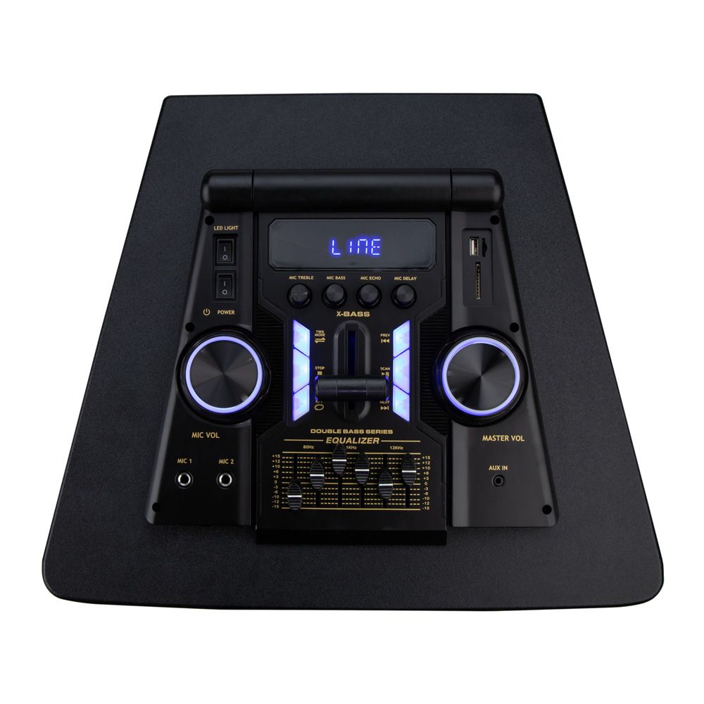 Дополнительная информация: дисплей, LED посветка динамика (активная), эквалайзер 6 полос, регулировка высоких низких частот, управление настройками микрофона