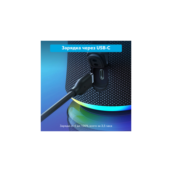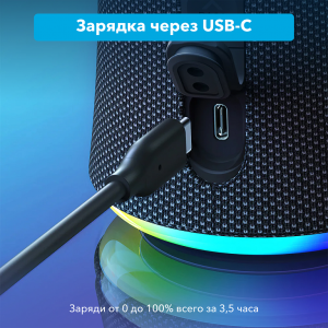 Модель Anker Soundcore Flare 2 оснащена USB-портом Type-C и Bluetooth-модулем для синхронизации со смартфоном или планшетом.