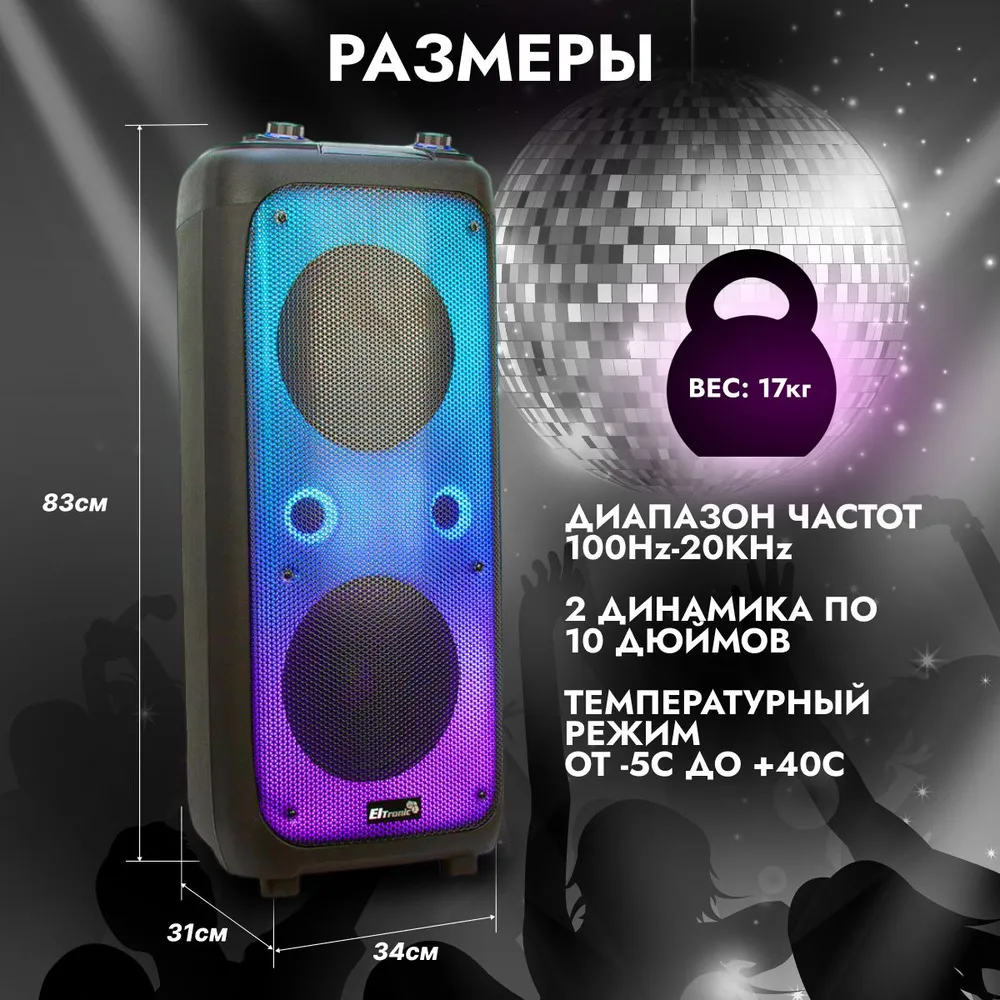 Характеристики: Колонка ELTRONIC 20-62 FIRE BOX 1000 динамик 2шт 10 дюймов черная с функцией TWS