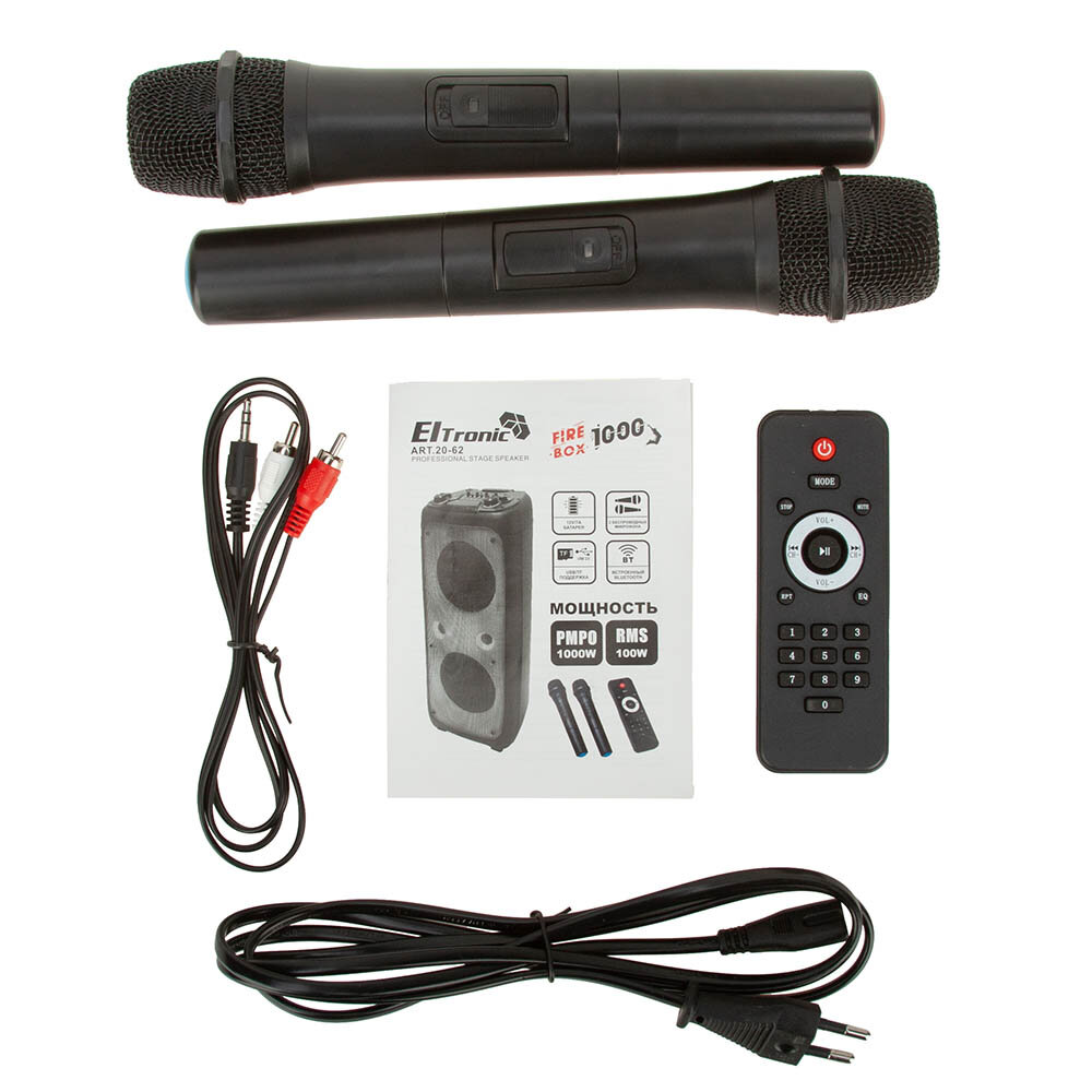 ELTRONIC 20-62 FIRE BOX 1000 – это большая блютуз колонка для проведения мероприятий, праздников, вечеров и концертов. Ее номинальной мощности в 100 Ватт и пиковой в 1000 Ватт хватит, чтобы озвучить большое помещение или приличных размеров площадь на свежем воздухе.