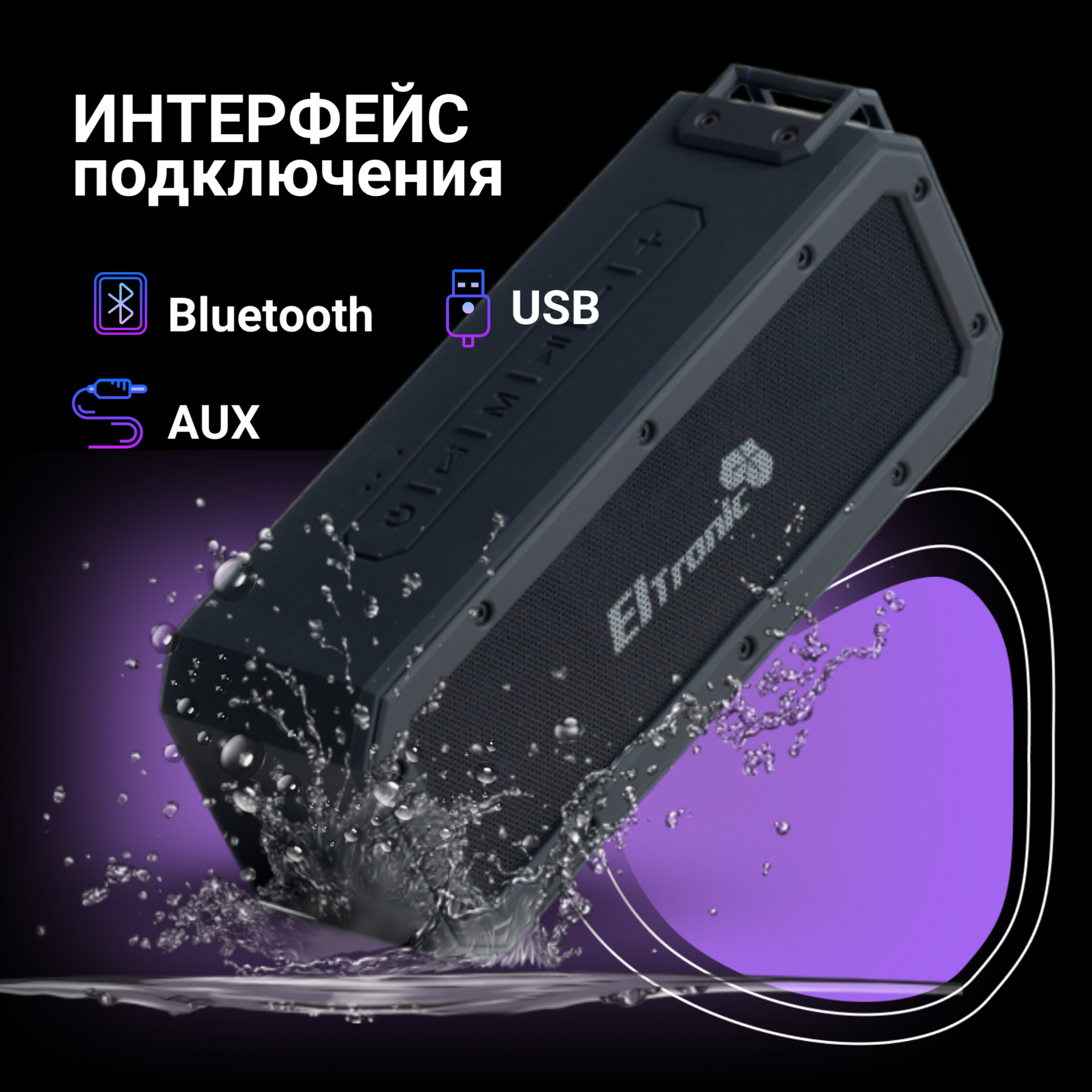 Защита от воды ipx7, противоударное покрытие, TWS функция (синхронизация двух колонок в стерео систему через Bluetooth)