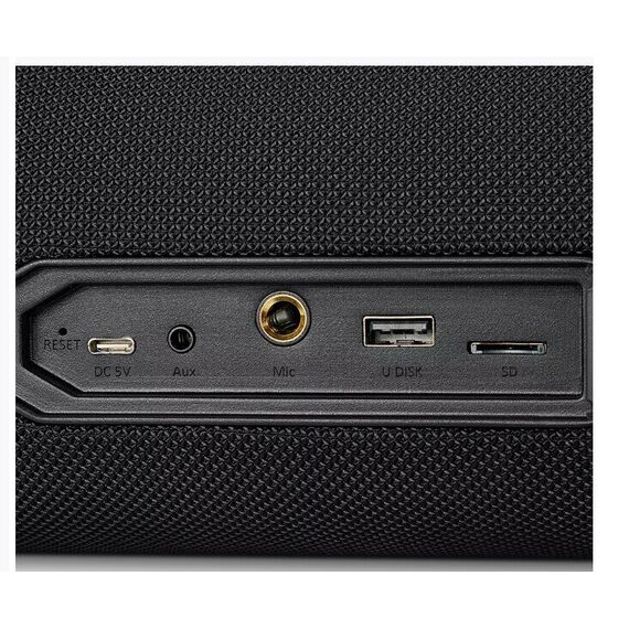 Тип: моно; Суммарная мощность: 60 Вт; Беспроводная связь: Bluetooth; Версия Bluetooth: v. 5.0; Разъемы и интерфейсы: USB, microSD, Jack 6.3 мм (микрофон, гитара); Количество полос AC: 1; Питание: от аккумулятора; Тип элементов питания: свой собственный;