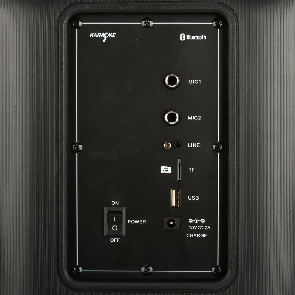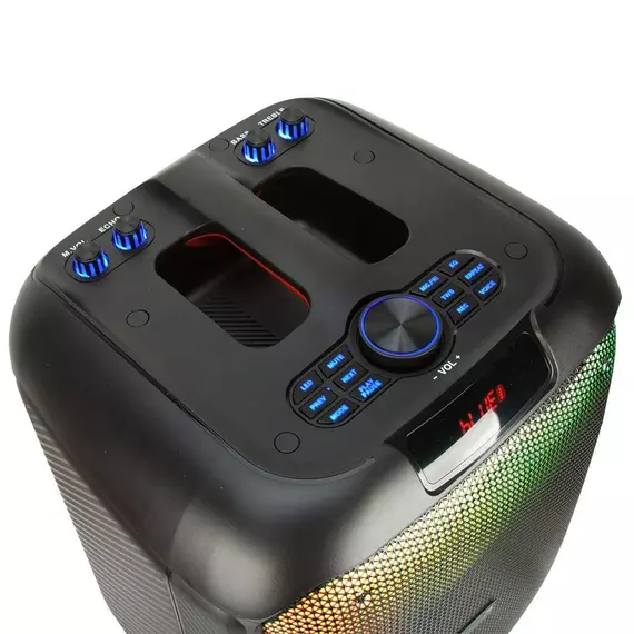 Динамик в тридцать сантиметров диаметром (в дюймах это 12) закрытый ударопрочной решеткой и рассеивателем. Рядом на всей передней панели, за исключением динамика, расположены светодиоды. При включенной подсветке, колонка создает особую атмосферу: яркие цвета — радуют, а приглушенные настраивают на романтический лад.