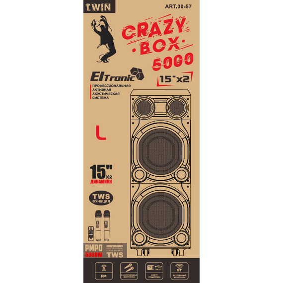Колонка 15" (30-57 CRAZY BOX 5000) динамик 4шт/15" комплект 2 колонки ELTRONIC с TWS