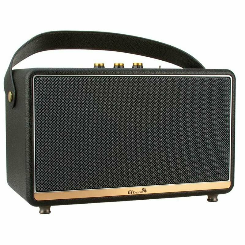Добротный ретро-дизайн переносной аудиоколонки делает отсылки к лучшим образцам аудиотехники прошлого. Здесь и качественное кожаное покрытие, представленное в четырех цветах на выбор (красный, черный, коричневый, зеленый), и золотистые ручки настройки, и ручка для переноски, с которой раньше отправлялись в гараж или на родные 6 соток, даже сеточка, закрывающая динамики переносной аудиоколонки, очень похожа на ту, что мелькает в далеких детских воспоминаниях.
