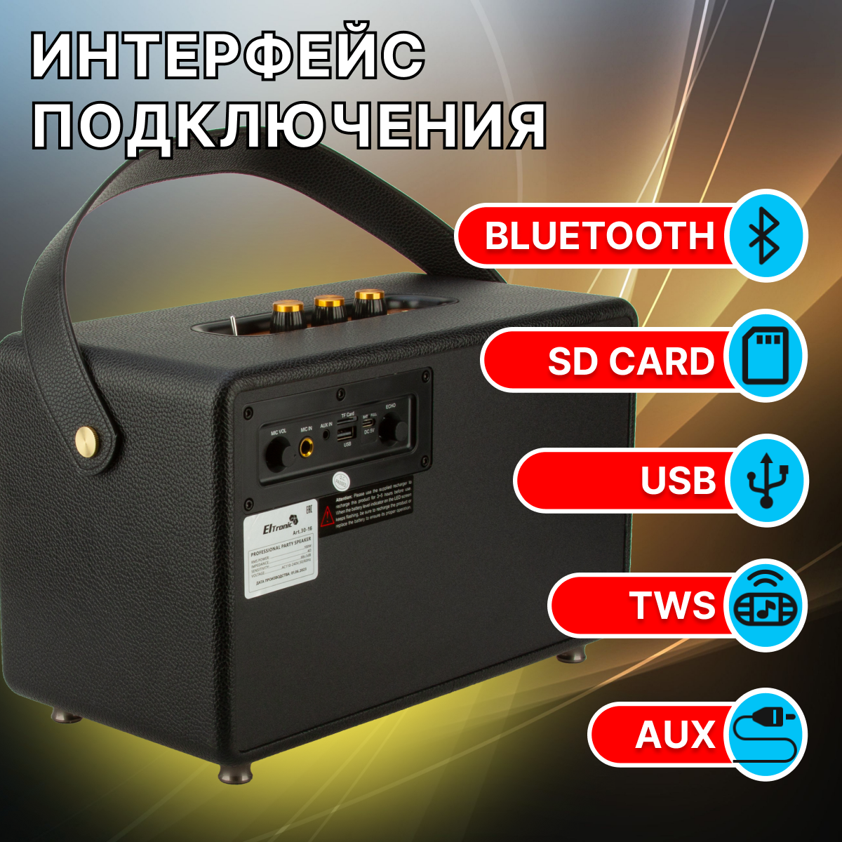 Звук у аудиоколонки глубокий, достойный, хорошо отыгрывает музыку разных жанров. Для получения объемного звучания можно соединить две одинаковые аудиоколонки ELTRONIC 30-16 MONSTER BOX 1000 через функцию TWS.