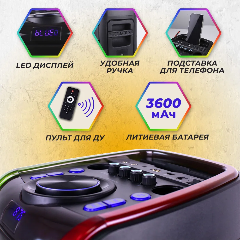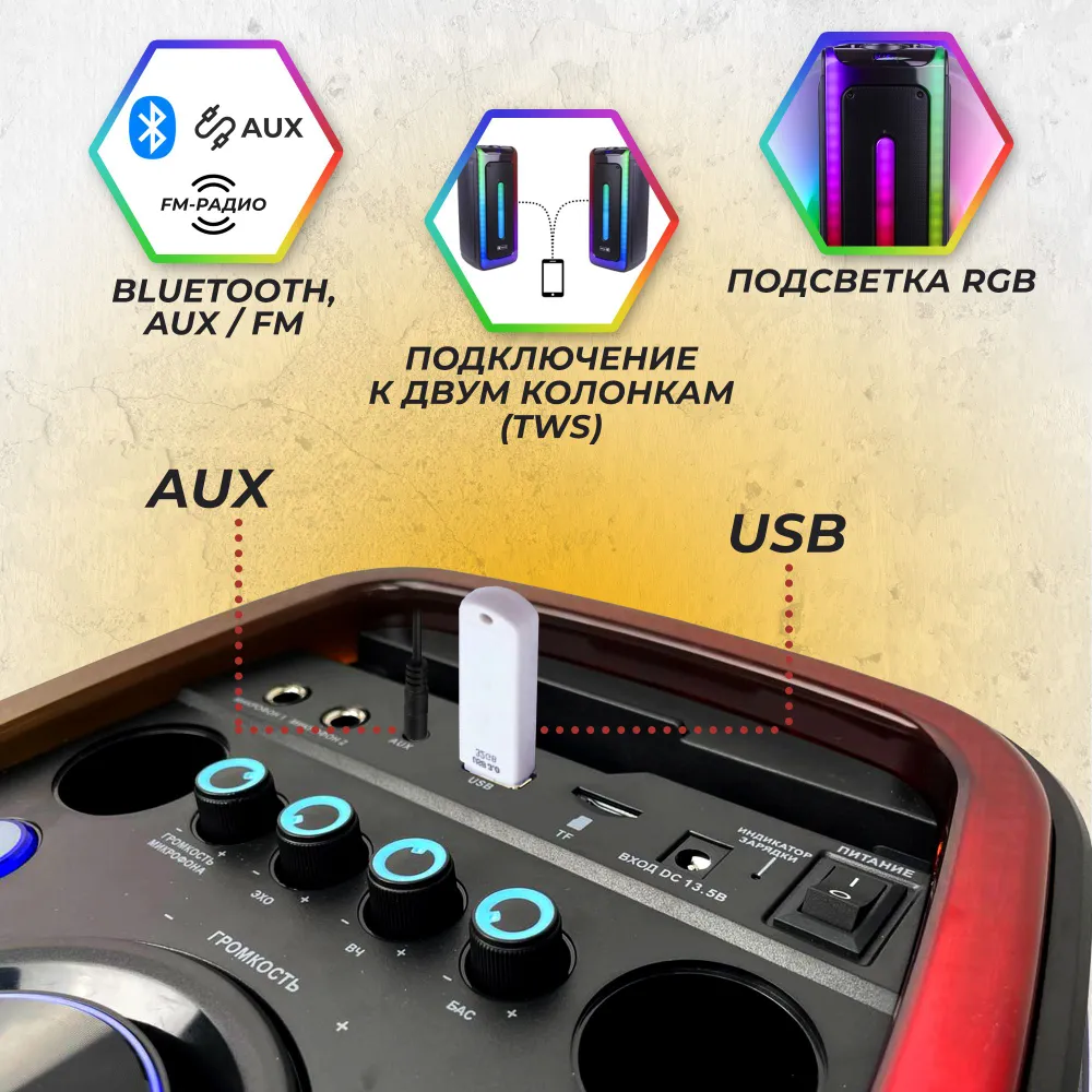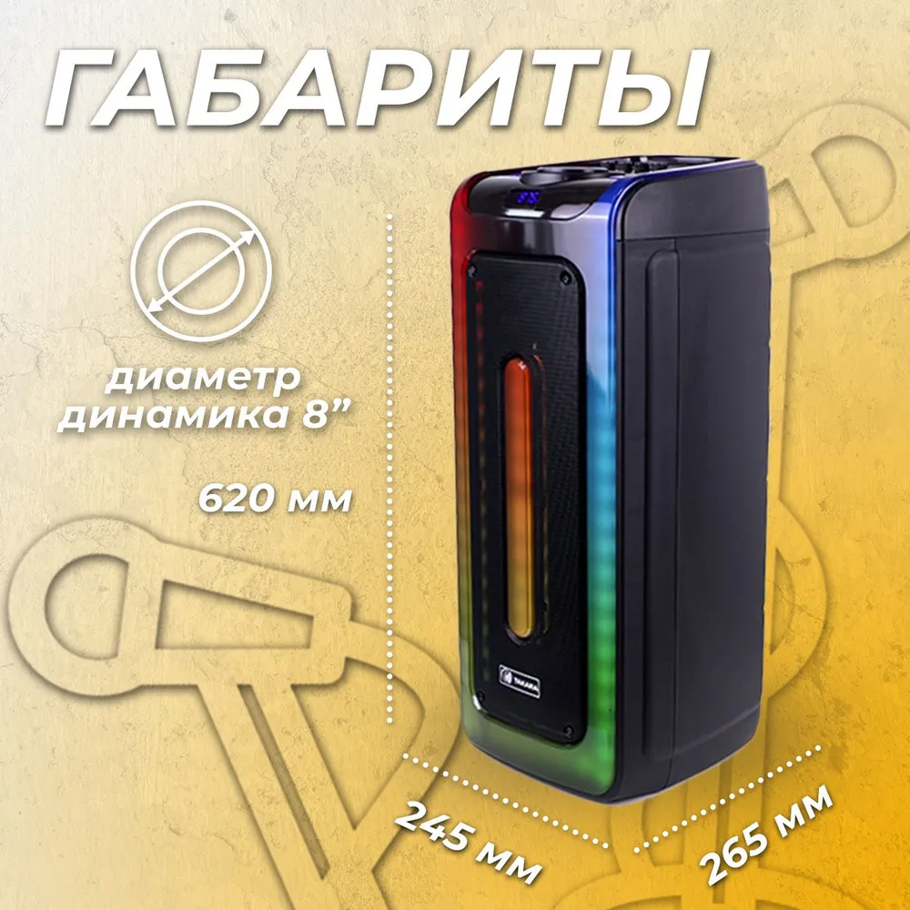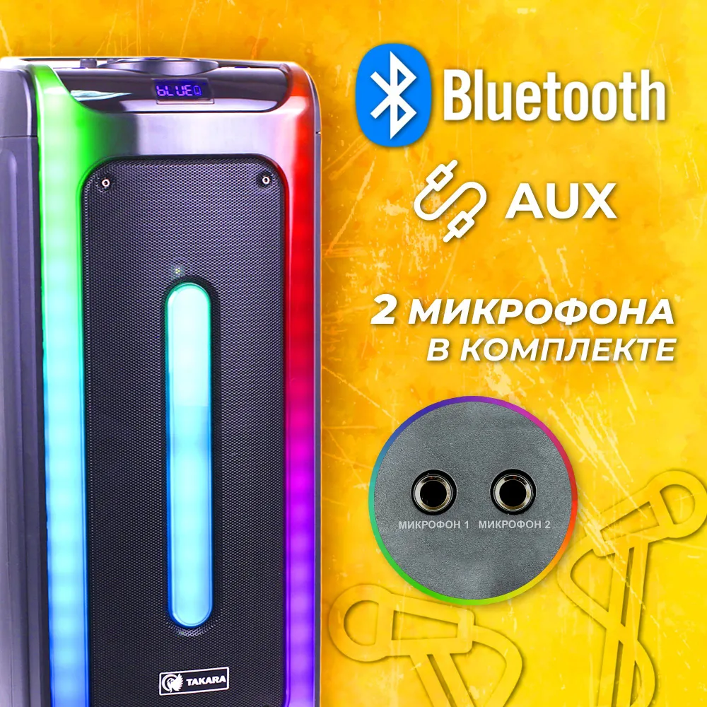 Характеристики: Колонка портативная TAKARA PARTY 802 с подсветкой