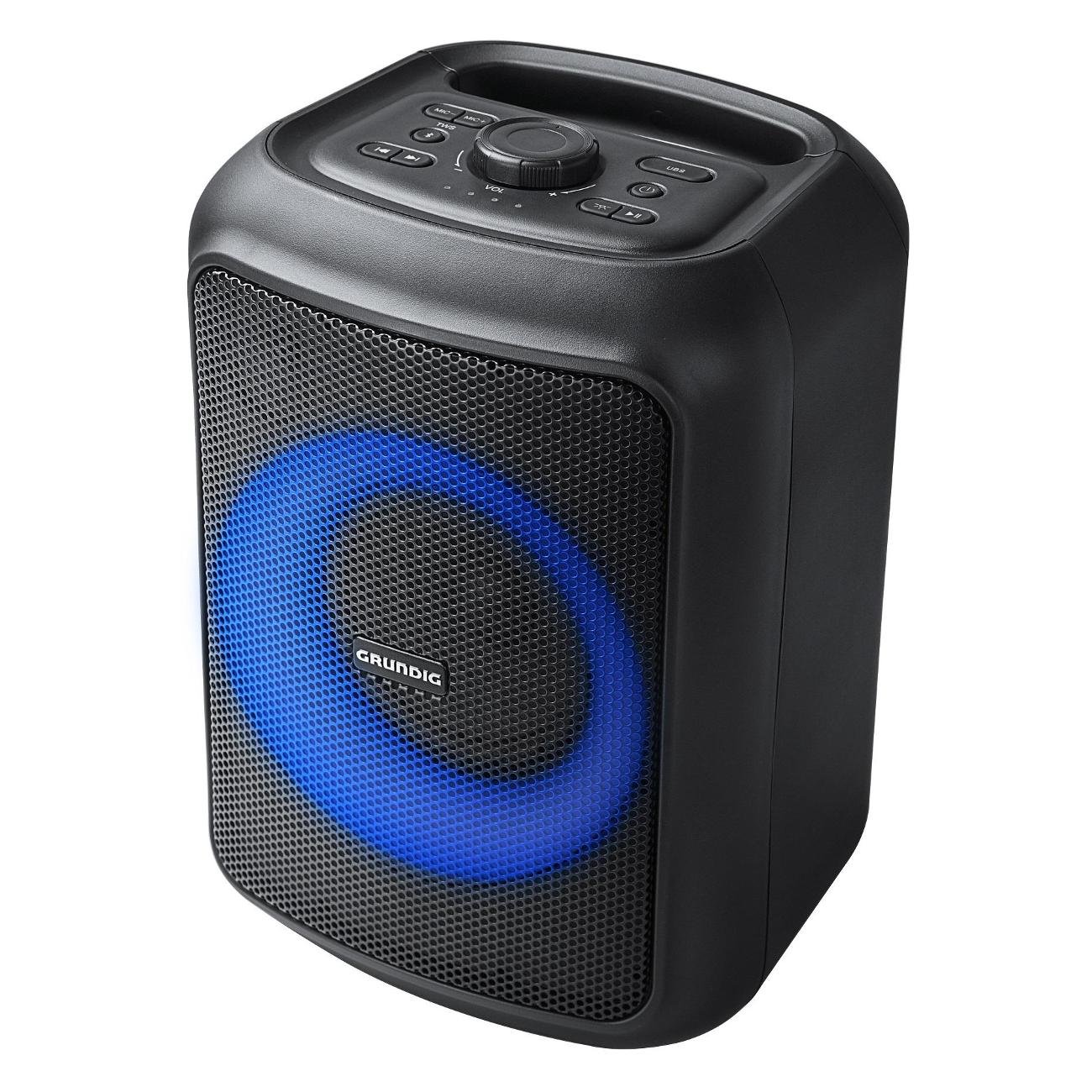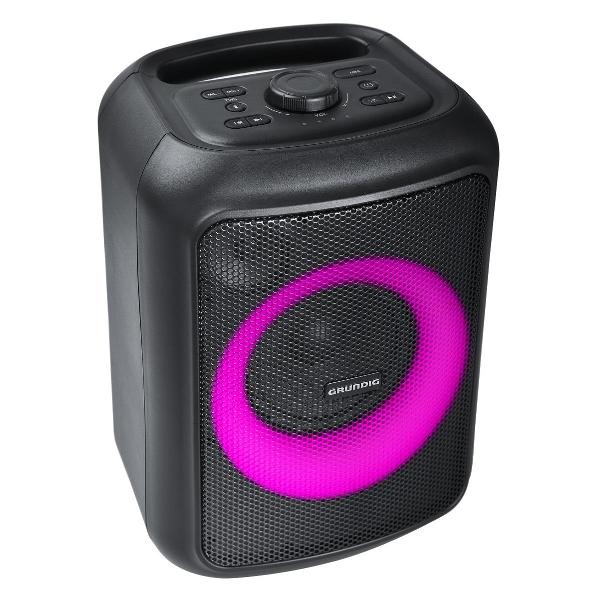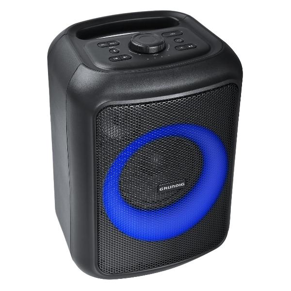 Одноканальная музыкальная Midi-система Grundig PartyHit весом 3,9 кг обладает габаритными размерами 35х25х22,5 см. Потребляемая мощность составляет 60 Вт. Модель выполнена в черном цвете и снабжена цветной подсветкой. Корпус изготовлен из металла и пластика, относится к IPX4-классу защиты от влаги.