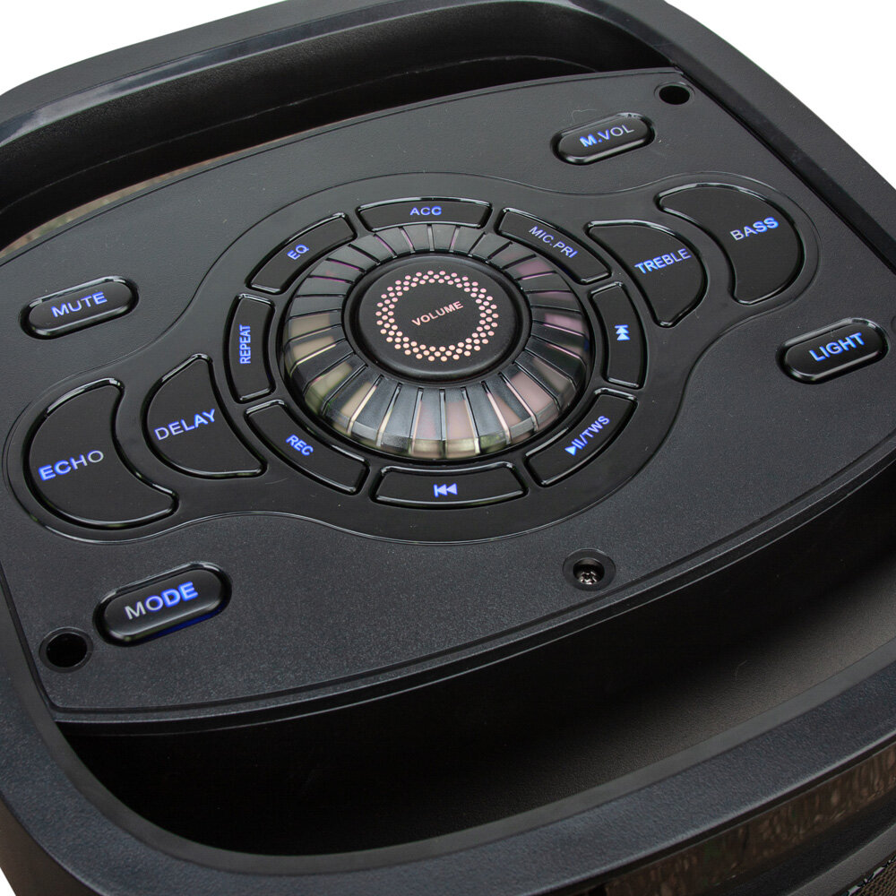 FM-радио, встроенный микрофон (функция HandsFree), дисплей, караоке, поддержка microSD, ручка, световые эффекты