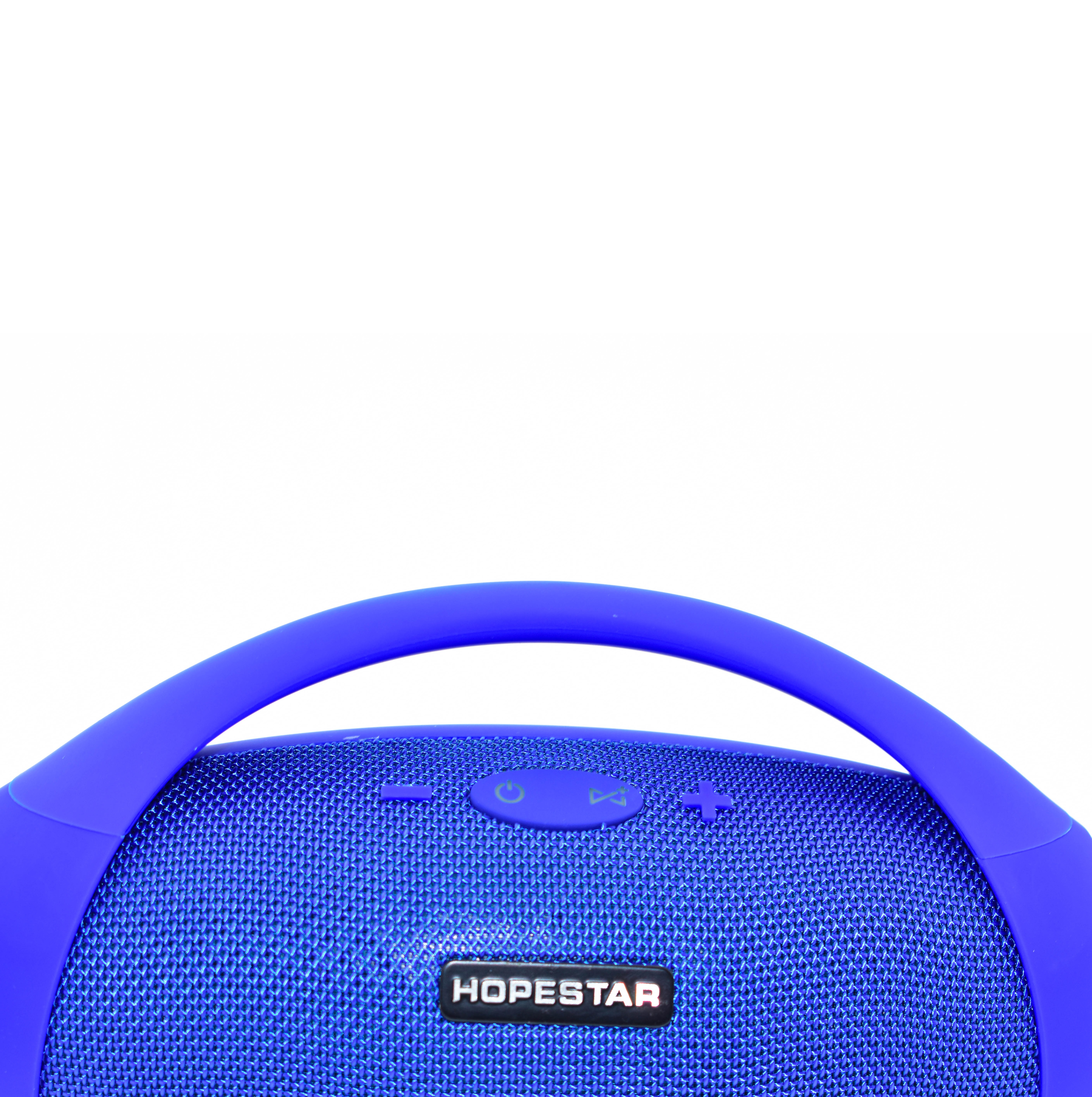 Блютуз колонка Hopestar H32 - портативная колонка в водонепроницаемом корпусе. Колонка имеет встроенный аккумулятор, может воспроизводить по Bluetooth, с USB флешек, с карт памяти, с AUX входа, есть FM радио, есть встроенный микрофон. Мощность 10 Вт. Корпус обтянут жесткой тканью, по бокам металлические накладки, разъемы в задней части закрыты резиновой заглушкой. В колонке 2 динамика размером 57 мм и по бокам 2 пассивных излучателя. В Hopestar H32 USB разъём используется для воспроизведения с флешек, microUSB – для зарядки колонки и как вход для FM антенны, антенной служит комплектный кабель USB-microUSB.