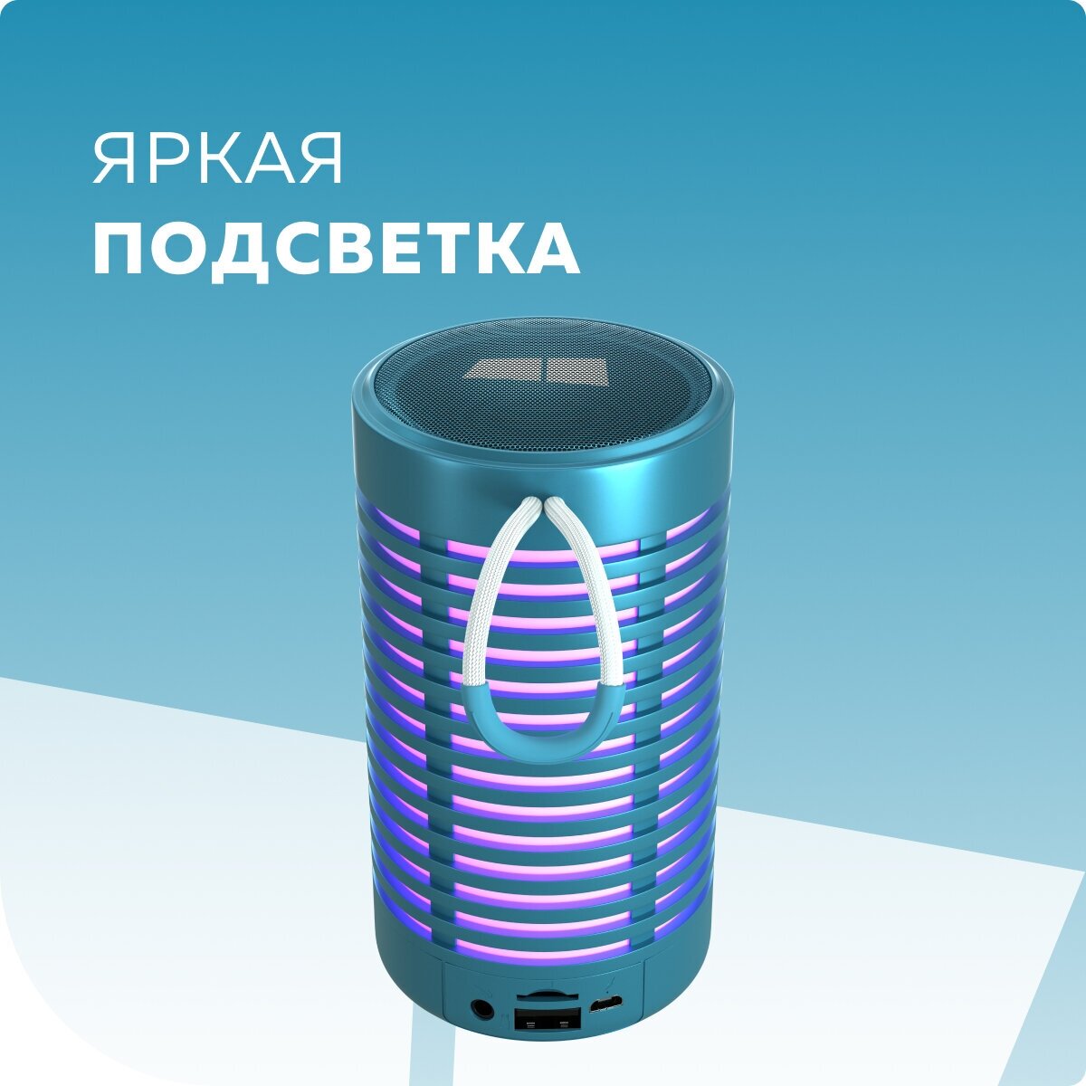 Стильная беспроводная колонка More Choice BS23 поддерживает стандарт Bluetooth v5.3, даёт возможность прослушивания музыки с флеш карт USB, карт памяти microSD и имеет режим FM-радиоприемника. С линией AUX можно напрямую подключать внешние устройства, например, планшетный ПК, телевизор, сотовые телефоны. Заряда аккумулятора хватит на 2 часа беспрерывного прослушивания музыки или разговоров. Особенностью конструкции является светодиодная подсветка разных цветов: яркие мигающие вспышки следуют за мелодией.