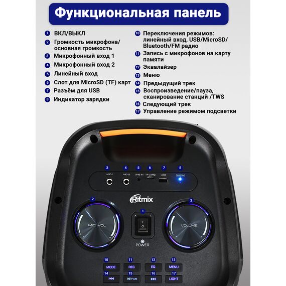 Мощная колонка с 8 дюймовым динамиком и богатым функционалом