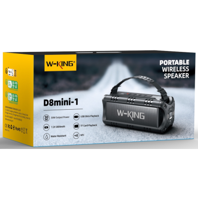 Влагозащищенная по классу IPX6 портативная акустика W-King D8 mini отличается от своего прообраза D8 более компактными размерами и мощностью 30Вт. Отличный носимый вариант для активного отдыха с небольшим весом и удобным ремнем.