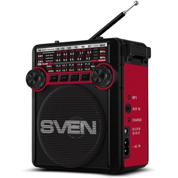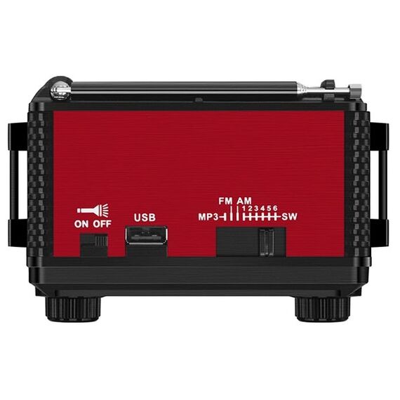 Встроенное FM/AM/SW1-6 радио; 8-ми диапазонный радиоприёмник; воспроизведение музыки с USB flash, microSD и SD карт памяти; телескопическая поворотная антенна; встроенная батарея; возможность проводного подключения к источнику звука.
