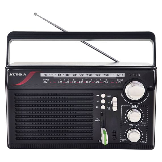 Радиоприемник портативный Supra ST-33U черный USB SD
