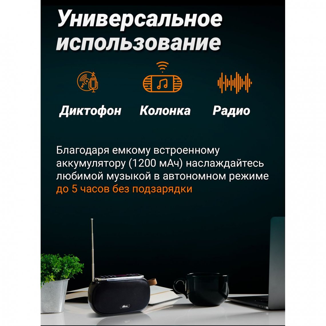 Телескопическая антенна. Встроенный диктофон
