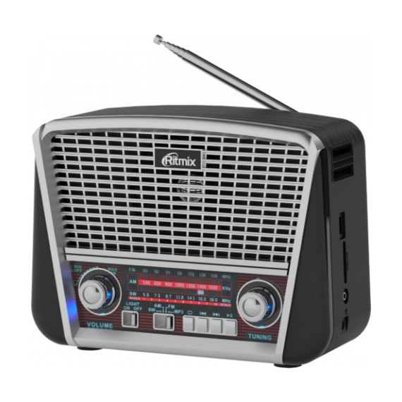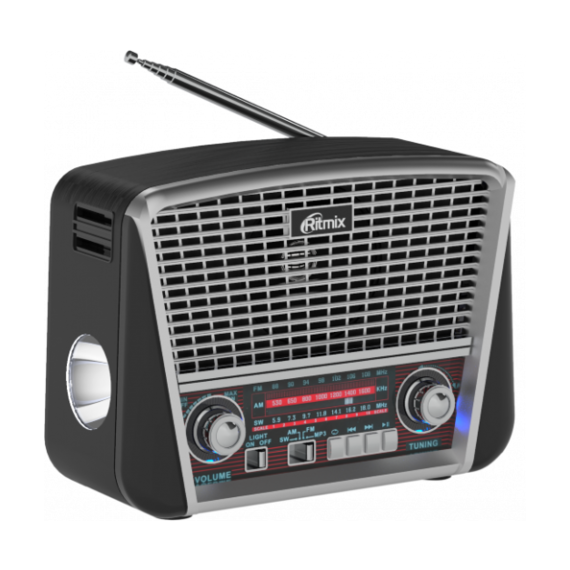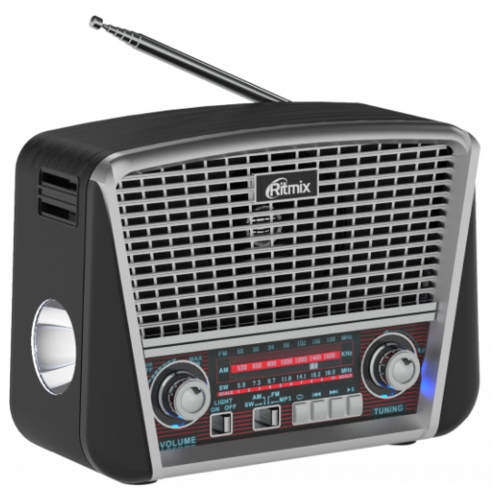 - встроенный фонарь, питание от встроенного аккумулятора, AUX-IN