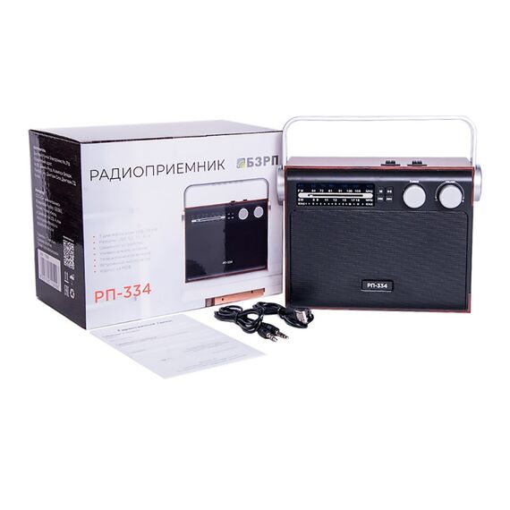 Ретро-дизайн приятно удивит покупателя и навеет ностальгией. Подойдет под любой интерьер, благодаря своему дизайну. Находясь на витрине, привлекает внимание покупателей. Радиоприемник обеспечит уверенный прием сигнала в нескольких диапазонах, а именно: КВ, УКВ и СВ. Радиоприемник БЗРП РП-334 оснащен одним динамиком мощностью 5Вт.