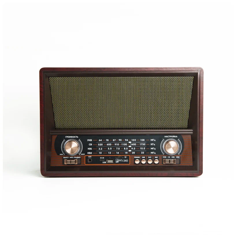 Ретро-дизайн приятно удивит покупателя и навеет ностальгией. Подойдет под любой интерьер, благодаря своему дизайну. Находясь на витрине, привлекает внимание покупателей. Радиоприемник обеспечивает уверенный прием сигнала в УКВ/СВ/КВ1-2 диапазонах. Радиоприемник БЗРП РП-340 оснащен двумя динамиками мощностью 5Вт.