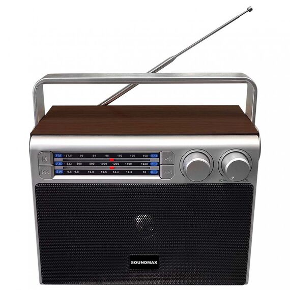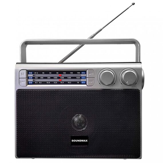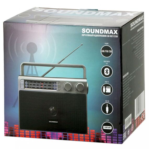 Аналоговый радиоприемник Soundmax SM-RD2122UB поддерживает работу в частотах FM, AM и СВ. Диапазон принимаемых частот - 87,5х108 МГц. Модель может питаться от сети, батареек и от Li-Ion аккумулятора емкостью 1200 мА*ч, которого достаточно для 10 часов функционирования. Аппарат оснащен динамиком мощностью 3 Вт.