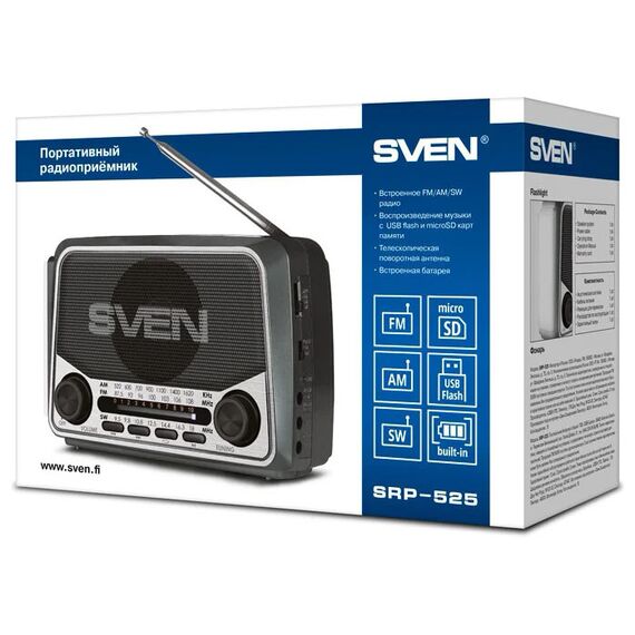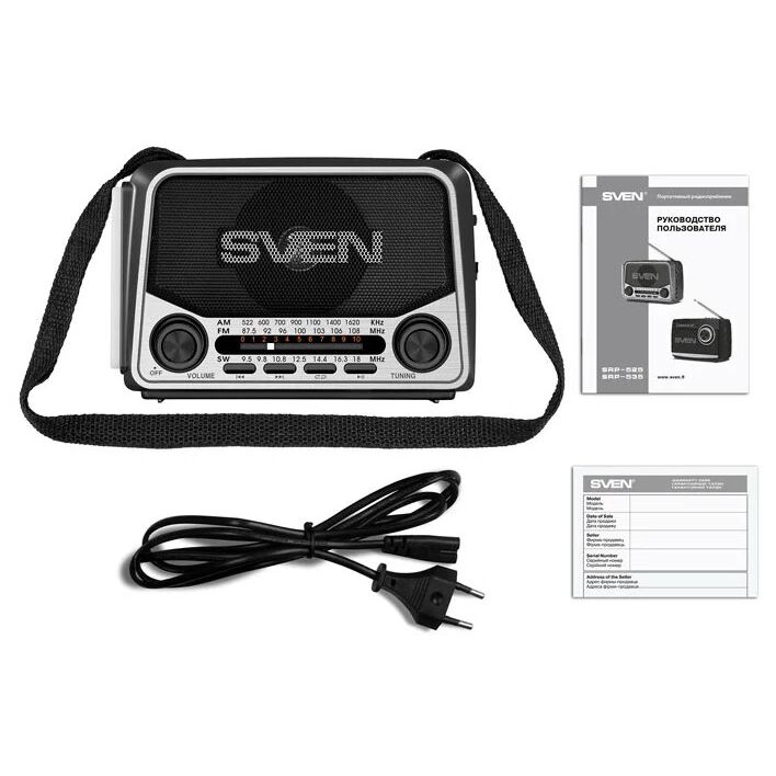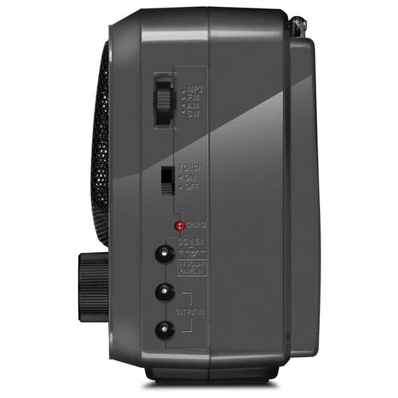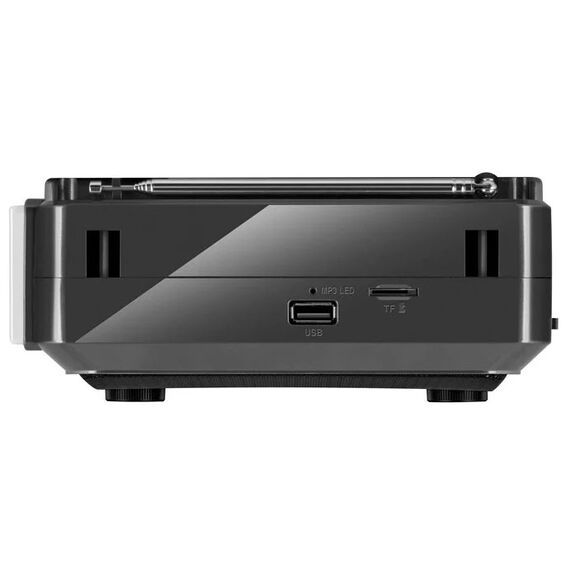 Дополнительная информация: поддержка USB flash и microSD; диаметр динамика 76 мм; телескопическая поворотная антенна; встроенный аккумулятор.