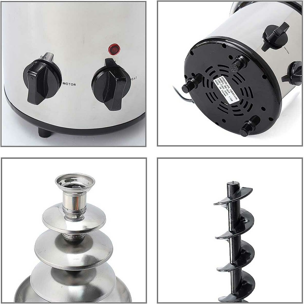 Детский шоколадный фонтан Gastrorag CF20C — модель компактных размеров (21х46х21 см), идеально подходящая для использования во время праздничных мероприятий. Модель обладает шнековой конструкцией, которая включает четыре яруса и глубокую чашу. Максимальная загрузка — до 1 кг. Индикация сообщает о включении прибора. Детали устройства изготовлены из нержавеющей стали, устойчивой к деформации и механическому воздействию. Мощность потребления — 175 Вт. Для подключения к сети используется метровый кабель. Вес модели составляет 2,3 кг.