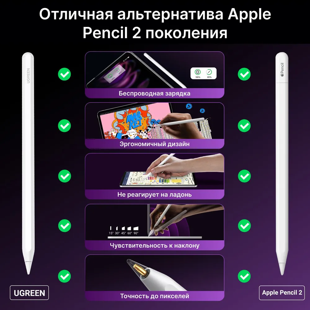 Стилус UGREEN LP653 (15910) Smart Stylus Pen for iPad.