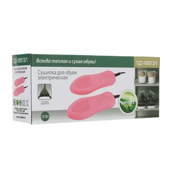 Прибор Delta ТД2-00013/1 представлен в эргономичном розовом корпусе. С такой сушилкой вы быстро избавитесь от лишней влаги и пота. Соответственно, исключается риск образования грибка. Кроме того, приятно надевать теплую обувь перед выходом на улицу зимой.