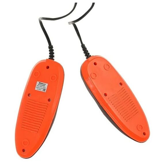 Антибактериальная сушилка для обуви Sakura арома SA-8153ABK 17,7x6,5x4,5 см, 20 Вт, нагрев до 70° С, общая длина кабеля питания 1,2м, препятствует росту микроорганизмов, устранение неприятного запаха, цвет: оранжевый/чёрный. Упаковка: блистер.