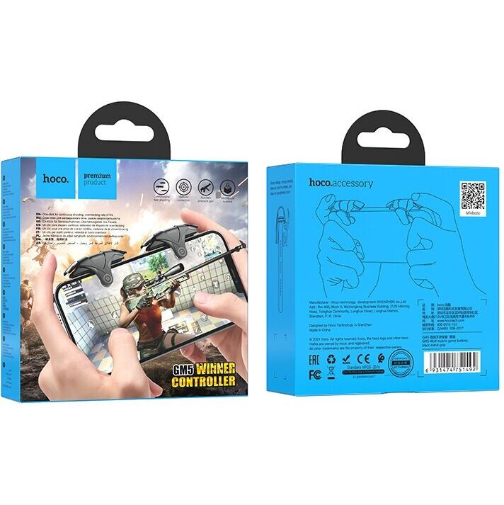 Hoco GM5 Wolf – это набор из двух геймпадов-триггеров, выполненных в футуристическом дизайне. Корпус их сделан из ABS-пластика. Благодаря продуманной конструкции, пальцы оказываются прямо над механическими кнопками, когда вы держите телефон обеими руками.