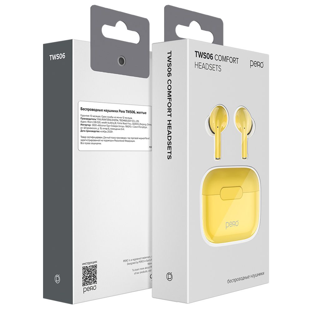 Наушники беспроводные PERO TWS06 Comfort (PTWS06Y) Yellow