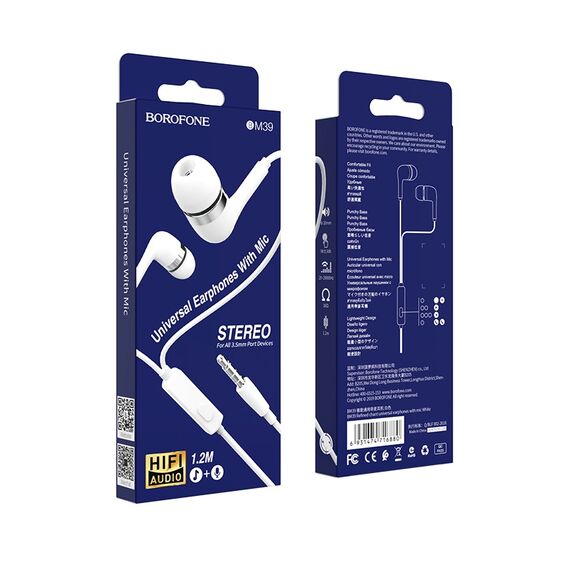 Наушники Borofone BM39 Refined chant with mic, white (о)