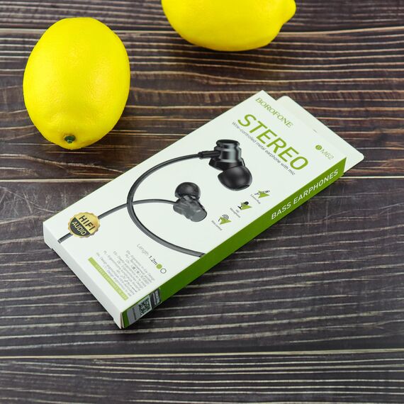 Наушники Borofone BM62 Prosperity universal Earphones with microphone, obsidian black