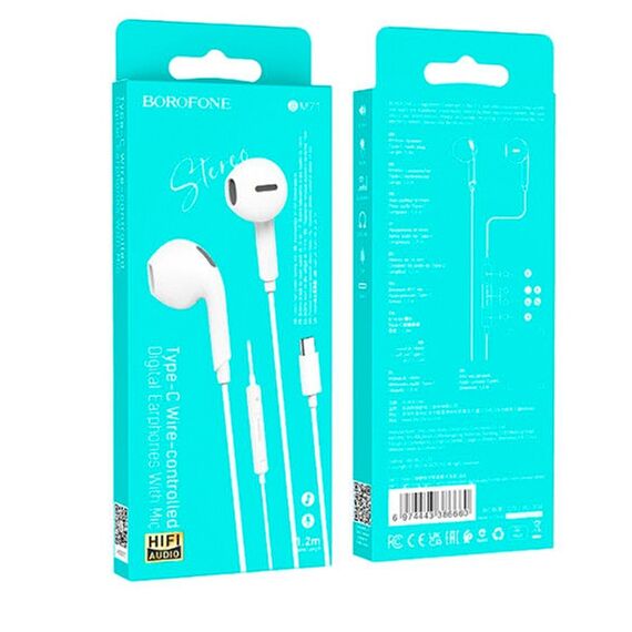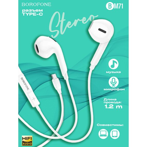 Наушники BOROFONE BM71 Light song Type-C wire-controlled digital earphones with microphone (белый)