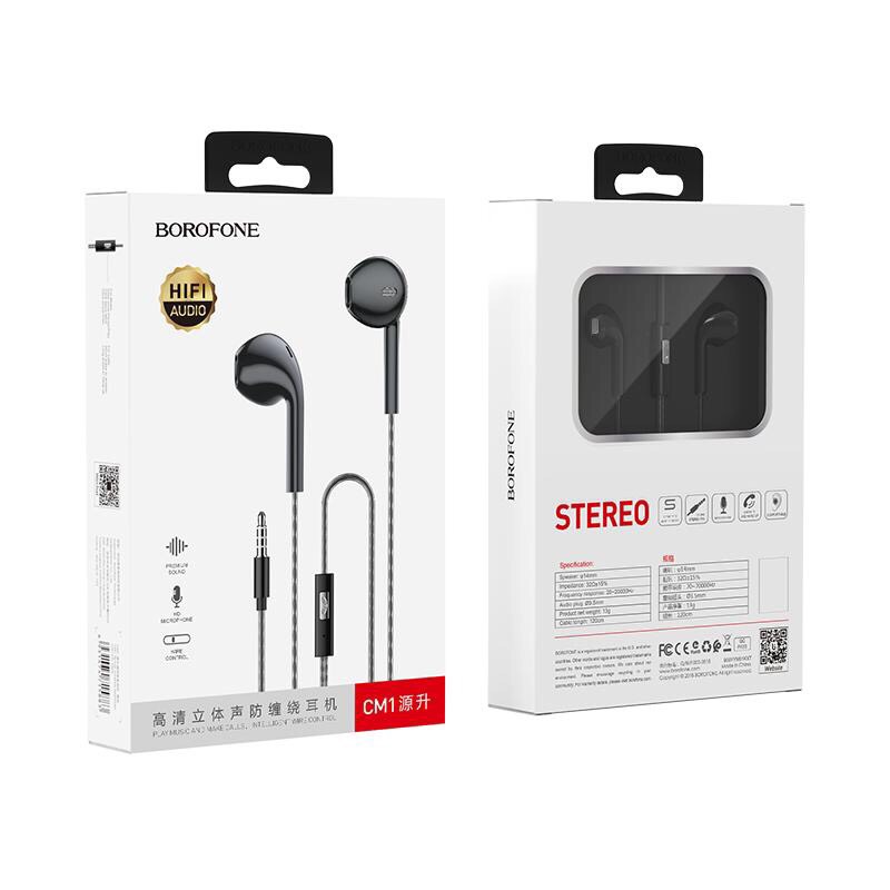 Наушники Borofone CM1 Spring universal earphones with mic, black