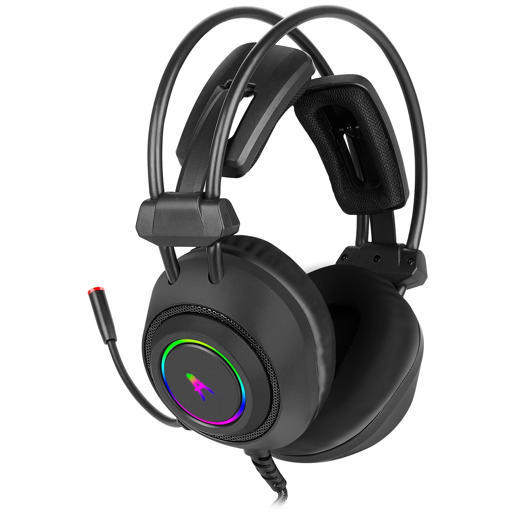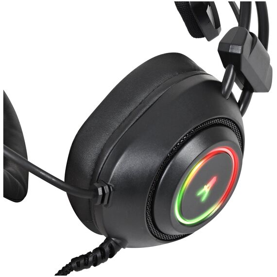 многоцветная динамическая подсветка; виртуальный объемный звук 7.1; управление звуком и подсветкой на проводе; адаптивное оголовье