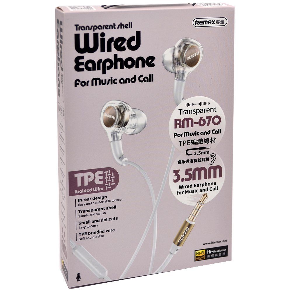 Наушники REMAX Wired Earphone for Music and call RM-670 - 1 шт. в коробочке