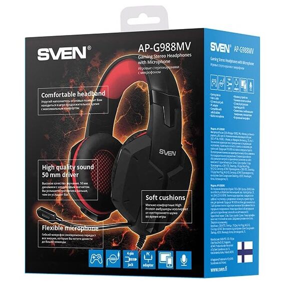 Наушники с микрофоном Sven AP-G988MV черный/красный 2.2м