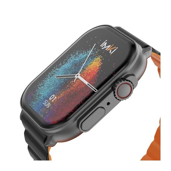 Смарт-часы iMiKi SF1 обладают черным корпусом из металла и пластика, и черным ремешком из силикона. Экран с диагональю 2.01" и разрешением 502x410 точек выполнен по технологии Super AMOLED. Модель разрешается использовать во время бега и плавания благодаря защите IP68. С помощью Bluetooth можно подключаться к смартфону, получать различные уведомления и осуществлять звонки.