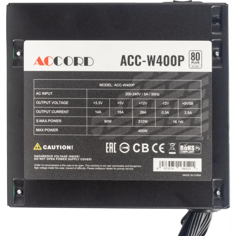 Блок питания Accord ACC-W400P ATX 400W 80 Plus White (20+4pin) 120mm fan 6xSATA