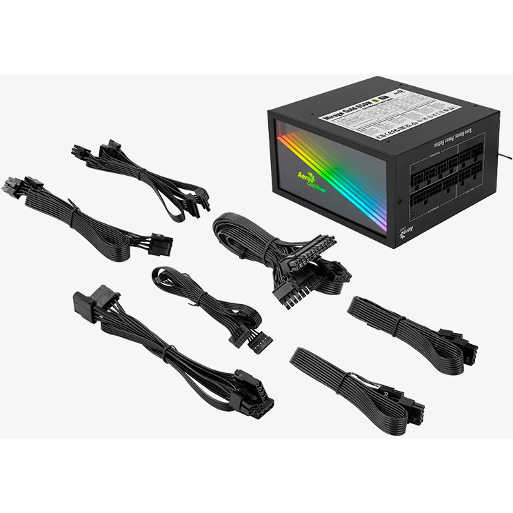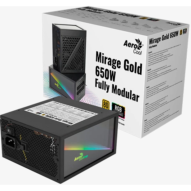 Блок питания AEROCOOL Mirage Gold 650W Fully Modular (4711099472581), ATX12V Ver. 2.52 80+Gold, APFC, 120mm fan, ARGB, 24pin, 2x(4+4)pin, 2xPCI-E)