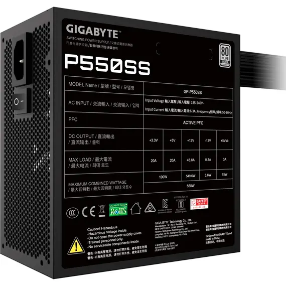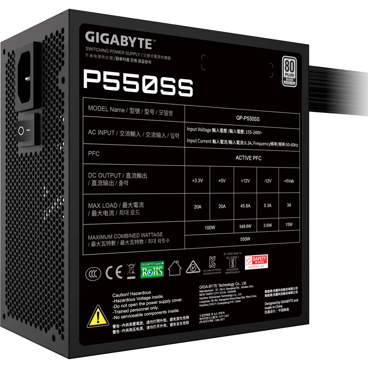 Блок питания Gigabyte P550SS 550W, 80+, Silver, не модульный, ATX 3.0